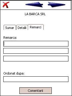 Comentariul inserat la rubrica Remarca apare inscris pe comanda tiparita, langa cantitatile comandate.
