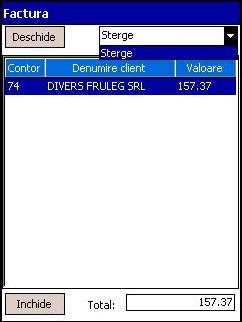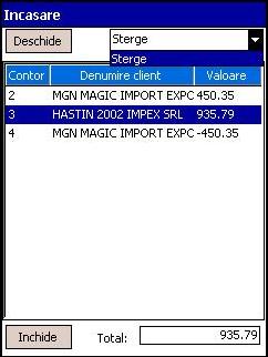Prin alegerea optiunii Incasare se deschide lista facturilor neachitate ale clientului selectat.