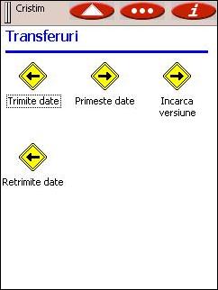 - Transferuri cuprinde sub-meniurile care permit transferul datelor intre dispozitivul mobil si baza de date.