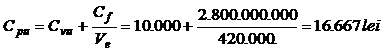 - determinarea pretului de vanzare unitar la producator (Pup):
