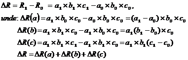 avem valorile R0 si R1 si vom proceda la separarea actiuni fiecarui factor a,b,c.