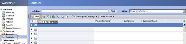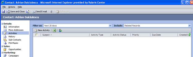 Din fereastra Contact vom accesa campul "Activities" - pentru crearea unui phone call.