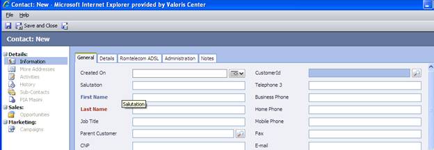 Inregistrarea informatiilor in CRM