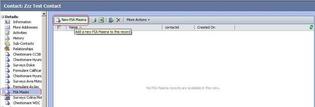 Daca nu avem date despre masina - la Regarding - selectam PIA masina - !Nu are Masina.