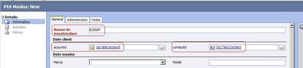 Daca auto este inregistrat cu numele utilizatorului - la Regarding - selectam PIA masina - iar in campul alaturat introducem numele clientului (Adrian Radu)