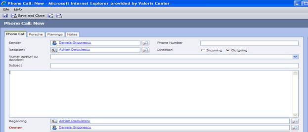 In tab-ul Phone Call la Recipient vom insera Account-ul + Contact-ul ( numele societatii + numele ultimei persoane care ne-a contactat)