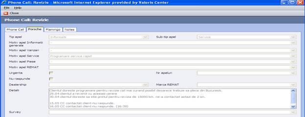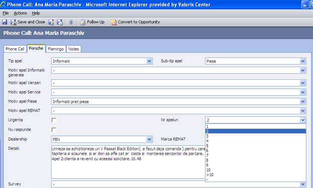 Detaliile apelului vor fi introduce in tab-ul Porsche astfel: