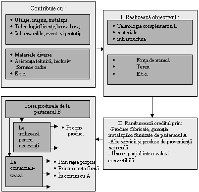 Operatiunea se deruleaza pe baza de contract, firma care lanseaza comanda numindu-se ordonator (importatorul), iar cea care realizeaza produsul numindu-se executant (exportatorul).