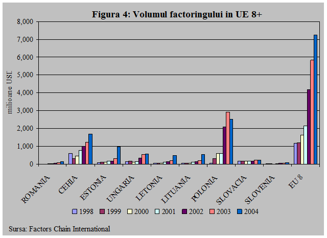 Cresterea semnificativa a volumului operatiunilor de factoring la nivelul celor opt tari est-europene plus Romania demonstreaza faptul ca societatile de factoring (factorii) sunt capabile sa genereze baze de date despre conturile interne, sa se bazeze pre surse externe (cum ar fi birourile de credit sau asiguratorii de credite), sau sa foloseasca factoringul international Daca luam ca sistem de referinta "Europa celor 15", observam faptul ca tarile ce au aderat de curand si cele ce vor adera in viitorul apropiat, cum este cazul Romaniei au suficient "spatiu de extindere", cel putin ca volum al operatiunilor de factoring.