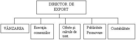 Functiile exportului sunt asigurate de catre serviciile specializate ale intreprinderii sub controlul unui director de export care indeplineste rolul de coordonator.