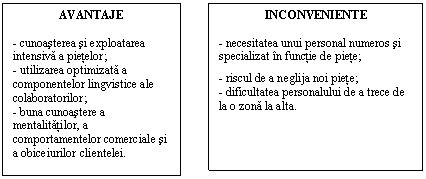 Diversitatea zonelor geografice acoperite conduce la cristalizare a structurii pe zone geografice ale carei avantaje si inconveniente sunt in principal urmatoarele: