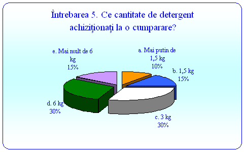 De asemenea, se constata ca imaginea produsului "detergent automat" si detergent cu balsam" este preferata, cantitatile variind intre 3 si 6 kg.
