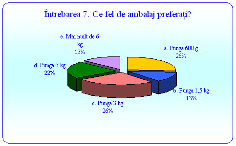 In ceea ce priveste tipul ambalajului, preferat si prioritar ramane cel de punga, - 75% mai incapator, in timp galetusa, care este foarte cautat in mediu rural , (doar 10%)