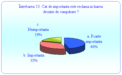 Intrebarea 13. Cat de importanta este reclama in luarea deciziei de cumparare ?