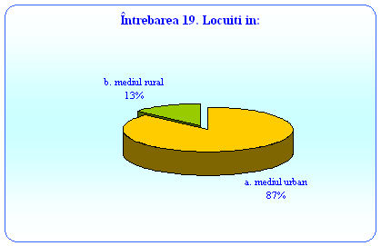 Din mediul urban fac parte 87% dintre respondenti, in timp ce din mediul rural fac parte 13%.