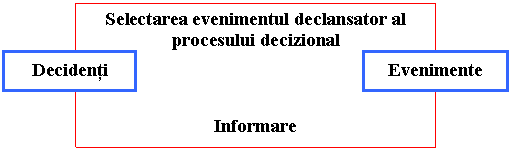 Primul moment, "1" este evenimentul declansator al procesului decizional si care de regula este consecinta unui ciclu anterior sau uneori poate fi exterior sistemului: - o reglementare juridica, o situatie speciala pe piata.