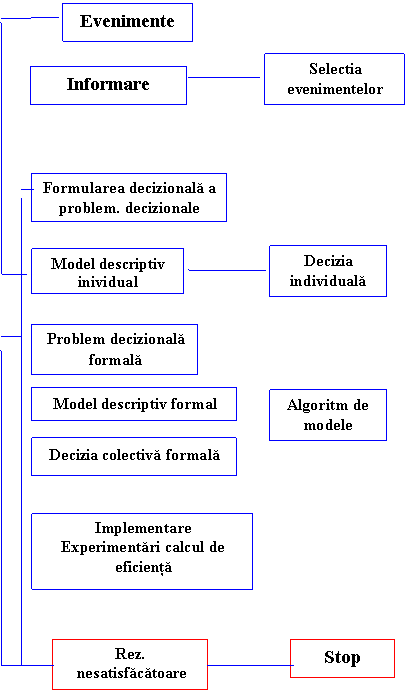 Elaborarea si fundamentarea deciziilor reprezinta un proces, ele presupunand mai multe etape care grupeaza activitati specifice. Privind problema decizionala, ea desfasurandu-se intr-un sistem socio-economic, in care se definesc cateva subsisteme intercorelate tehnologic, organizatoric, informational-decizional, al relatiilor umane si informatic se observa existenta unor conexiuni de cicluri procesuale, fiecare avand 3 componente principale.