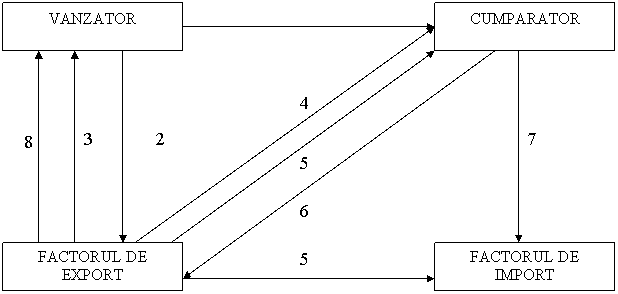 - Exportatorul cesioneaza creantele sale asupra debitorului sau, prin EF catre IF, care isi asuma riscul de neplata al debitorului;