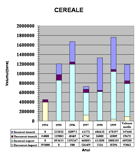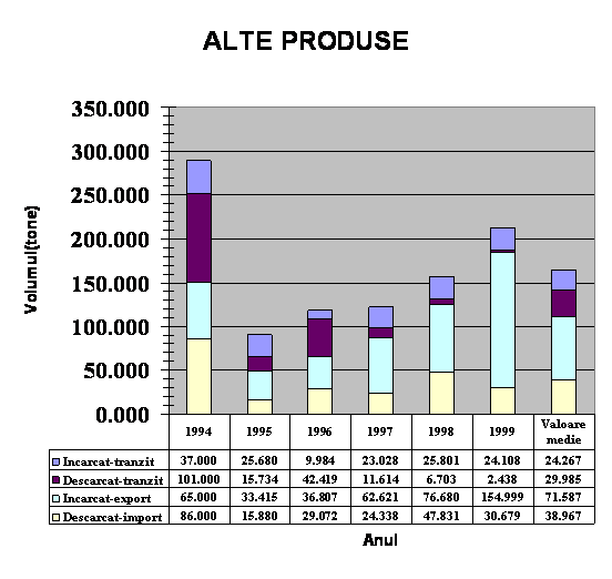 Statisticile privind volumul de manipulare al marfurilor din portul Constanta, din anul 1994 pana in anul 1999, au fost obtinute de la Administratia Portului.