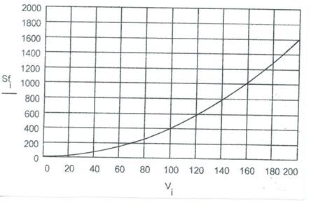 se calculeaza pentru diferite viteze de inceput al franarii, V este cuprins intre 0 si