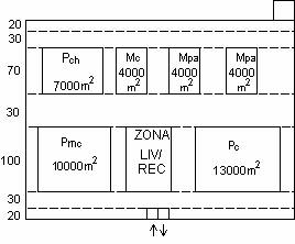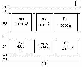 Rezulta deci ca lungimea terminalului este de 410m. Fiind vorba de un terminal cu doua dane care necesita spatii de depozitare pentru toate tipurile de marfuri manipulate la cele doua dane, se alege pentru latimea terminalului dimensiunea de 300m. Suprafata totala a terminalului va fi de 12000mp.