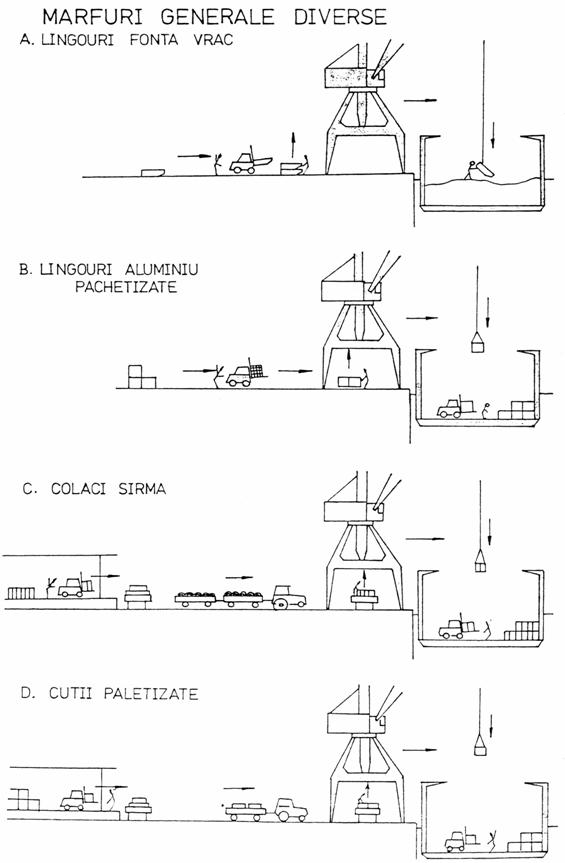Traficul in operatiunile de descarcare sau incarcare depinde in mod esential de tipul de marfa si de sistemul de manipulare utilizat. In general, traficul de marfuri poate fi grupat in trei mari categorii de marfa in functie de timpul mediu realizat pe nava si pe schimb (considerand 7 ore lucrate efectiv pe schimb):