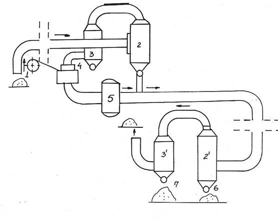 - un organ care separa materialul de aer la punctul de destinatie ( separator );