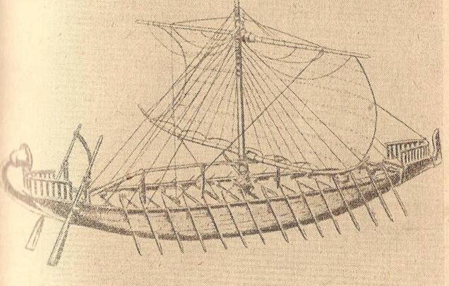 Pe langa aceste nave de lupta erau si nave de transport care aveau 20-30 metri lungime si 4-6 metri latime, dotate cu3-5 perechi de rame si cate o vela triunghiulara sau patrata .