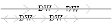 Linie continua neagra sau color cu sageti la intervale egale avand inserate literele "DW" |