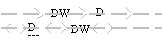 Linie intrerupta neagra sau color cu sageti la intervale egale avand inserate literele "DW" |