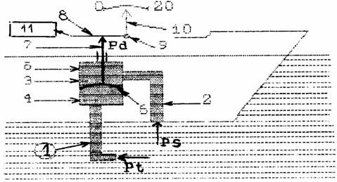Daca nava este in stationare, atunci membrana (6) nu va fi tensionata deoarece Pt=Ps. Daca nava este in mars, atunci Pt>Ps, iar ca urmare membrana se va curba intotdeauna in sus. In acest mod, va fi actionata mecanic tija (7) care va transmite aceasta miscare, prin sistemul de parghii (8) si pivotul (9), la indicatorul analogic (10).