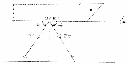 Pentru utilizarea in navigatie, se intrebuinteaza emitatoare de ultrasunete in configuratie IANUS (fig.34); se emit simultan fascicule catre prova si catre pupa, avand aceeasi inclinare (θ) fata de planul plutirii si aceeasi frecventa (fe) de emisie. Efectul Doppler actioneaza in sensul modificarii inegale a frecventelor receptionate, acestea avand urmatoarele expresii (descompuse in serii Taylor):