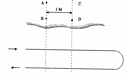 Dupa constructie, in cadrul probelor de mare, se determina viteza navei functie de numarul de rotatii la elice, parametru evolutiv deosebit de important al navei. Probele se executa in baza de viteze cu mile jalonate. Dispunerea jaloanelor este reprezentata in fig.35; perechile de jaloane A-B, respectiv C-D formeaza aliniamente paralele, aflate la distanta de 1 Mm unul de celalalt .