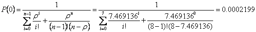 Pasul 2.Pentru a putea calcula durata medie de asteptare mai intai se calculeaza probabilitatea ca in agentie sa existe calatori cu ajutorul relatiei 6