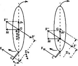 Punctul giratoriu (g) se deplaseaza din centrul de greutate spre etamboul navei, apropiindu-se de punctul de aplicatie al fortei F, micsorand mult bratul fortei de la Do, cat era la inceputul manevrei de punerea carmei, la D1, in momentul cand punctul giratoriu se stabilizeaza.