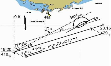 i)Se observa ca vantul este din prova-babord. Ca urmare a este cu semnul +, iar Vl f < Vrot (nava este deci "franata" de vant).