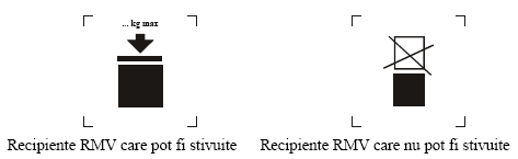 Īncarcatura de stivuire maxima admisa aplicabila atunci cānd recipientul RMV este īn curs de utilizare trebuie sa fie aplicata printr-un simbol dupa cum urmeaza:
