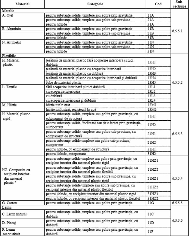 6.6.4 Prescriptii speciale aplicabile fiecarei categorii de ambalaje mari