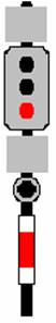 a. Semnalul luminos urmator este "pe oprire". Indicatia repetitorului are aspectul din Fig. 8.1;