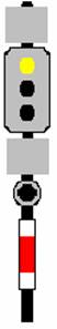 b. galben, permite circulatia trenurilor cu viteza afisata de indicatorul luminos de viteza - cu cifre de culoare alba - ordonand reducerea vitezei in vederea opririi la semnalul urmator;