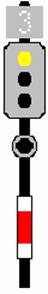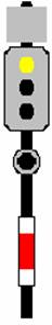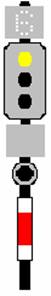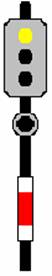 - Indicator numeric - cifre de culoare galbena - al vitezei reduse dupa semnalul urmator - in zeci de km/h sau o sageata alba cu varful in jos pentru "lipsa distanta de franare".