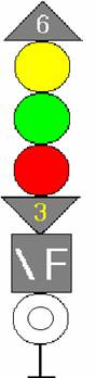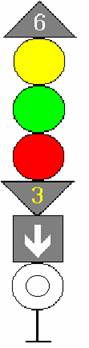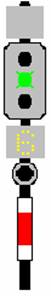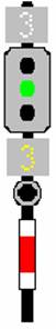 Fig. 12.1 Reperul pentru indicarea intrarii pe o sectie de circulatie cu semnale luminoase cu trepte multiple de viteza.
