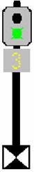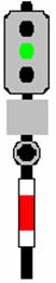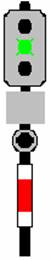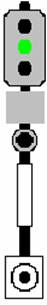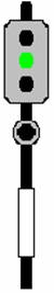 Ziua si noaptea: O lumina verde, spre tren, iar indicatorul luminos de viteza indica - cu cifre de culoare alba- viteza permisa la semnal.
