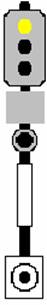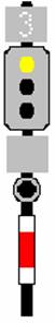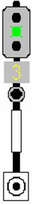Fig. 4.4 Liber cu viteza stabilita. Semnalul urmator indica liber cu viteza stabilita. Semnalul care urmeaza dupa semnalul urmator ordona oprirea. Indicatia apare numai in statiile situate pe o sectie inzestrata cu bloc de linie automat cu patru indicatii.