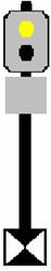 Ziua si noaptea: O lumina galbena, spre tren, iar indicatorul luminos de viteza indica - cu cifre de culoare alba- viteza permisa la semnal.
