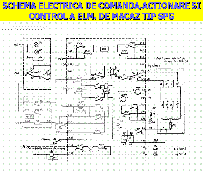 Schema unui bloc de macaz SG-66 cuprinde urmatoarele relee de comanda si control: