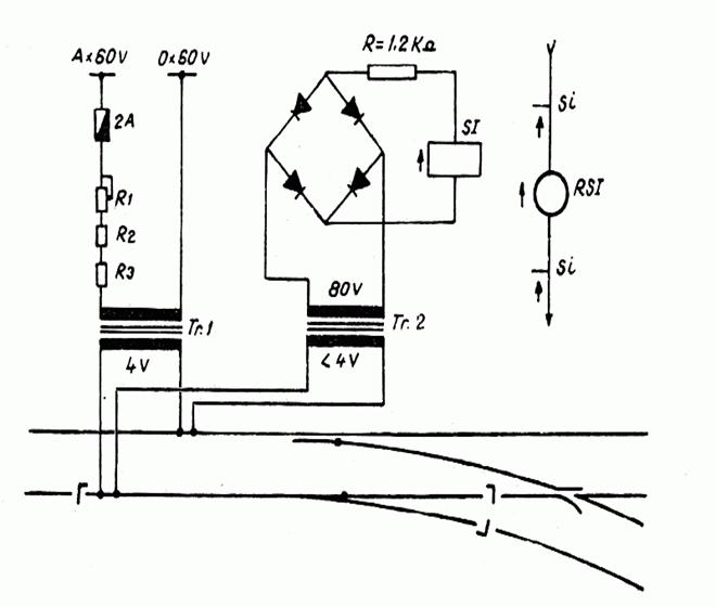 Transformatorul de alimentare coborator produce la secundar o tensiune de 4V, iar cel ridicator la releu, 80V. Releul de sectiune izolata, normal excitat, este releu telefonic plat, iar repetitorul sau este releu fisa neutral, de gabarit redus.