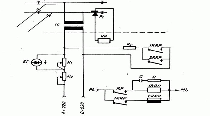 Cand osia trece peste pedala P1 se excita releul de pedala RP si prin contactul de lucru al acestuia se excita primul repetitor al releului de pedala 1RRP,iar dupa excitarea acestuia se excita si al doilea repetitor de pedala 2RRP.Prin contacte de lucru astfel stabilite ale celor doua repetitoare,rezistenta de reglare Rr se conecteaza in paralel cu infasurarea primara a transformatorului Tc.Ca urmare in circuitul primar curentul va creste si odata cu el creste si caderea de tensiune pe rezistenta R1 si astfel releul sectiunii izolate se excita.
