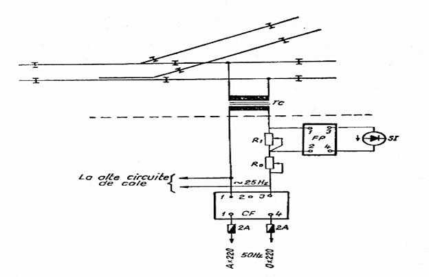 Cand circuitul de cale se ocupa,rezistenta din infasurarea secundara a transformatorului scade brusc datorita suntarii sinelor de catre osiile vagonului.Aceasta scadere a rezistentei provoaca cresterea curentului in infasurarea secundara a transformatorului si ca urmare in infasurarea primara curentul creste ,astfel incat caderea de tensiune pe rezistenta de reglare devine suficienta pt. atragerea sigura a releului de cale,iar acesta isi atrage armatura.
