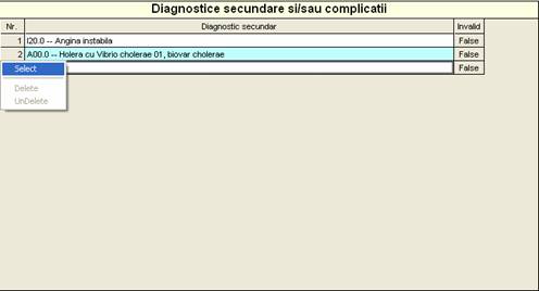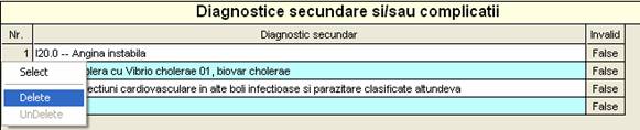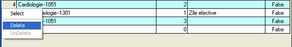 In cazul in care se doreste stergerea unei sectii, acest lucru nu se realizeaza prin stergerea manuala a informatiilor din fiecare coloana, ci prin selectarea randului respectiv, cu mouse-ul pe prima coloana ce afiseaza numarul de ordine, si click dreapta in acea celula. Este afisat un meniu din care se selecteaza optiunea "Delete":
